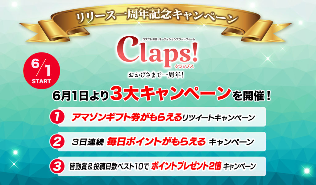 アプリリリース一周年を記念して6月1日より3大キャンペーンを開催!